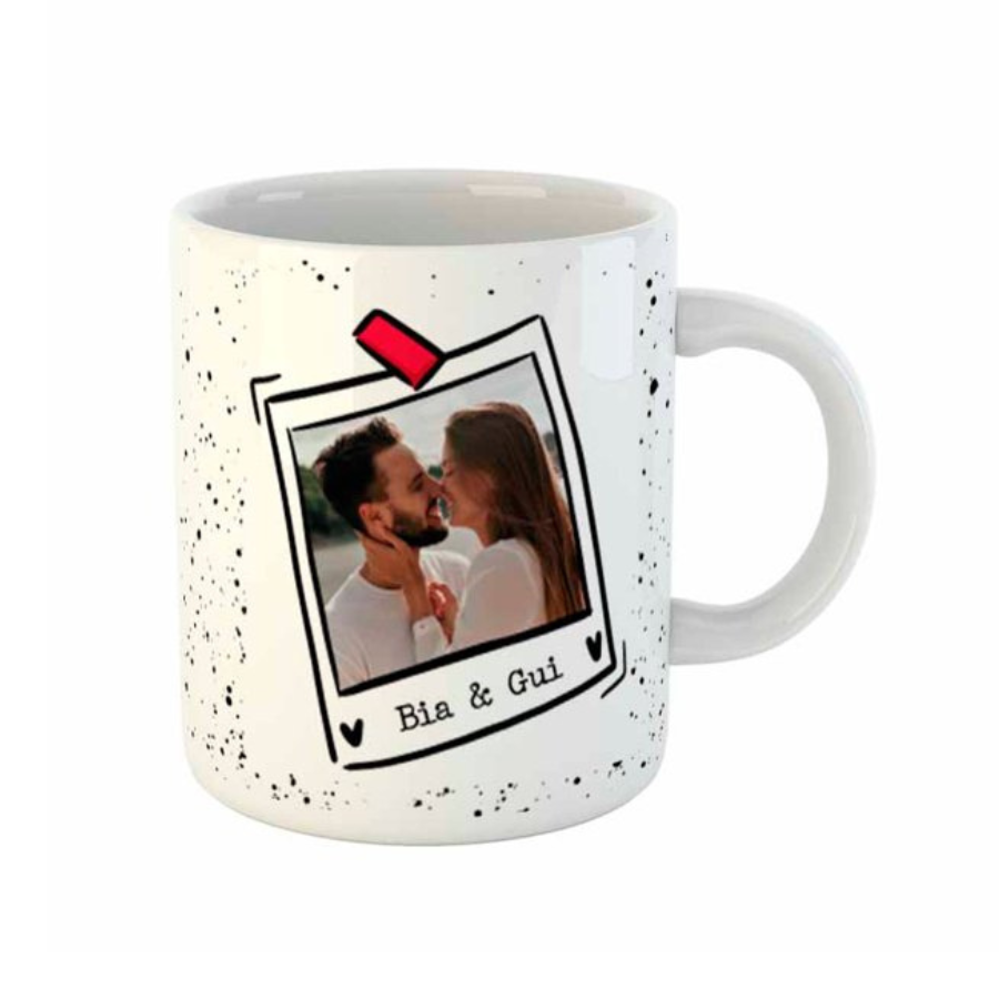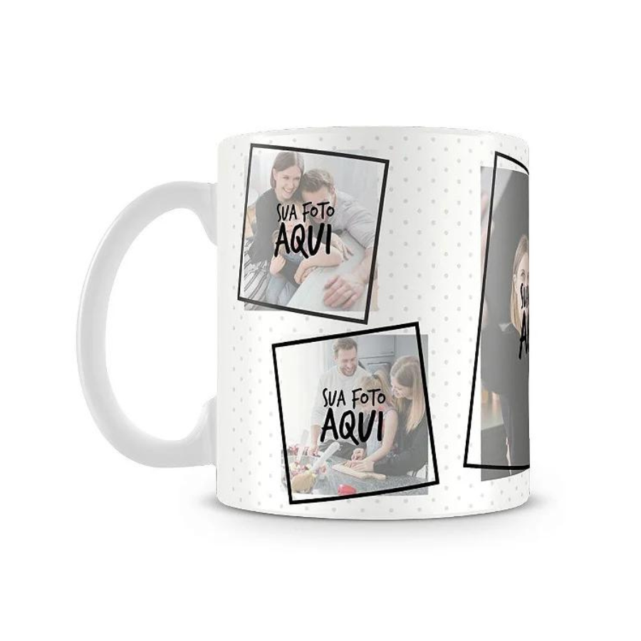 Essa caneca permite que você utilize fotos e texto. Não se preocupe, criamos a arte para você grátis!