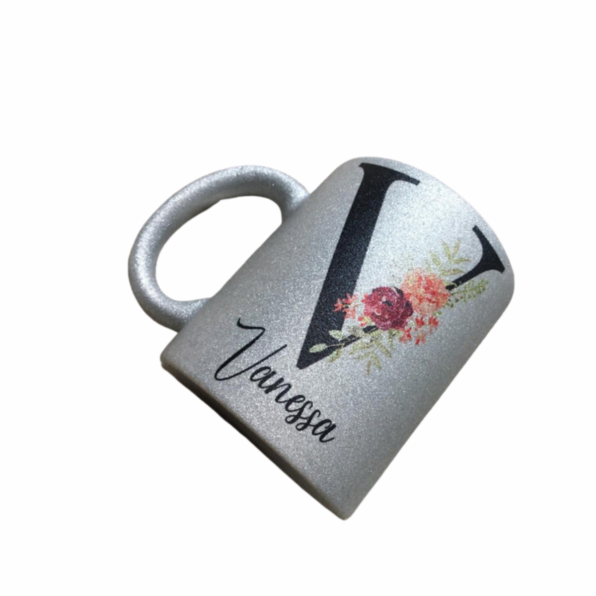 Caneca com Glitter Plateada personalizada.