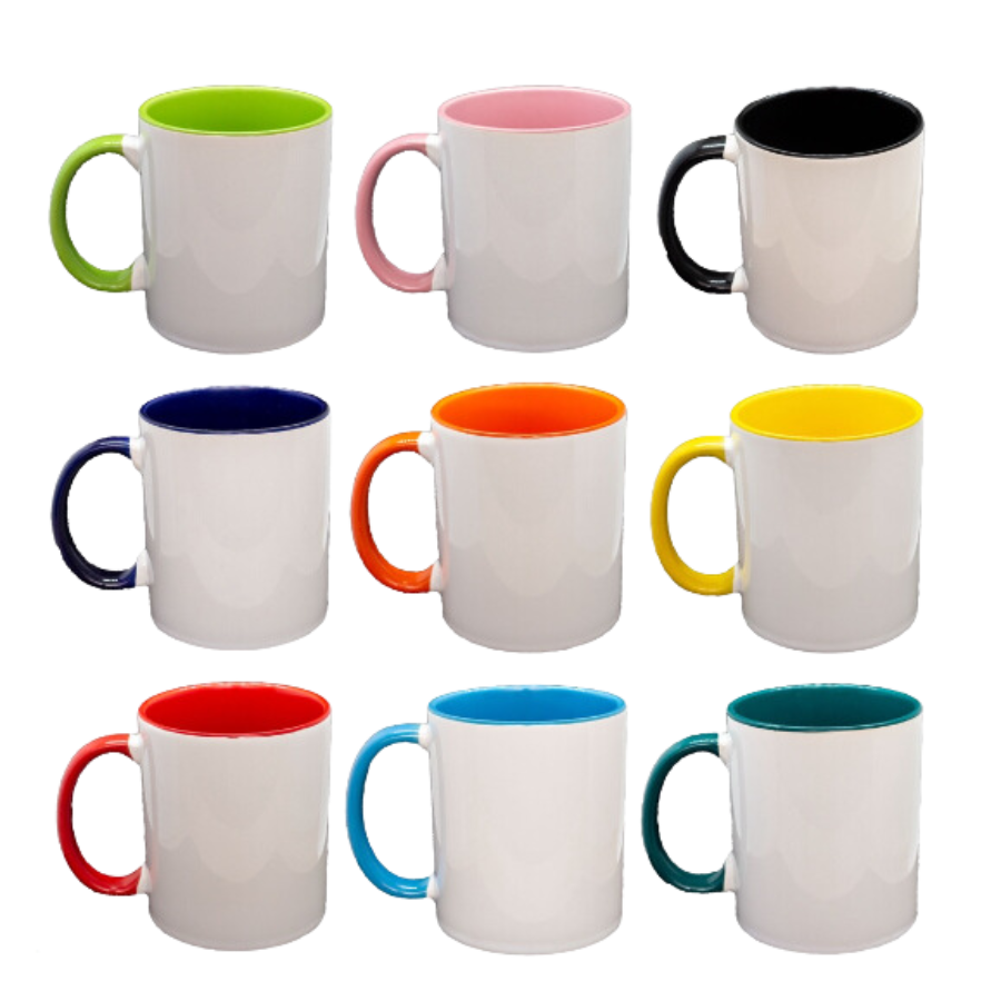 O Produto Caneca de Porcelana com Interior é personalizado sobre Sublimação. Você pode adicionar FRASES, NOMES E LOGOTIPOS.