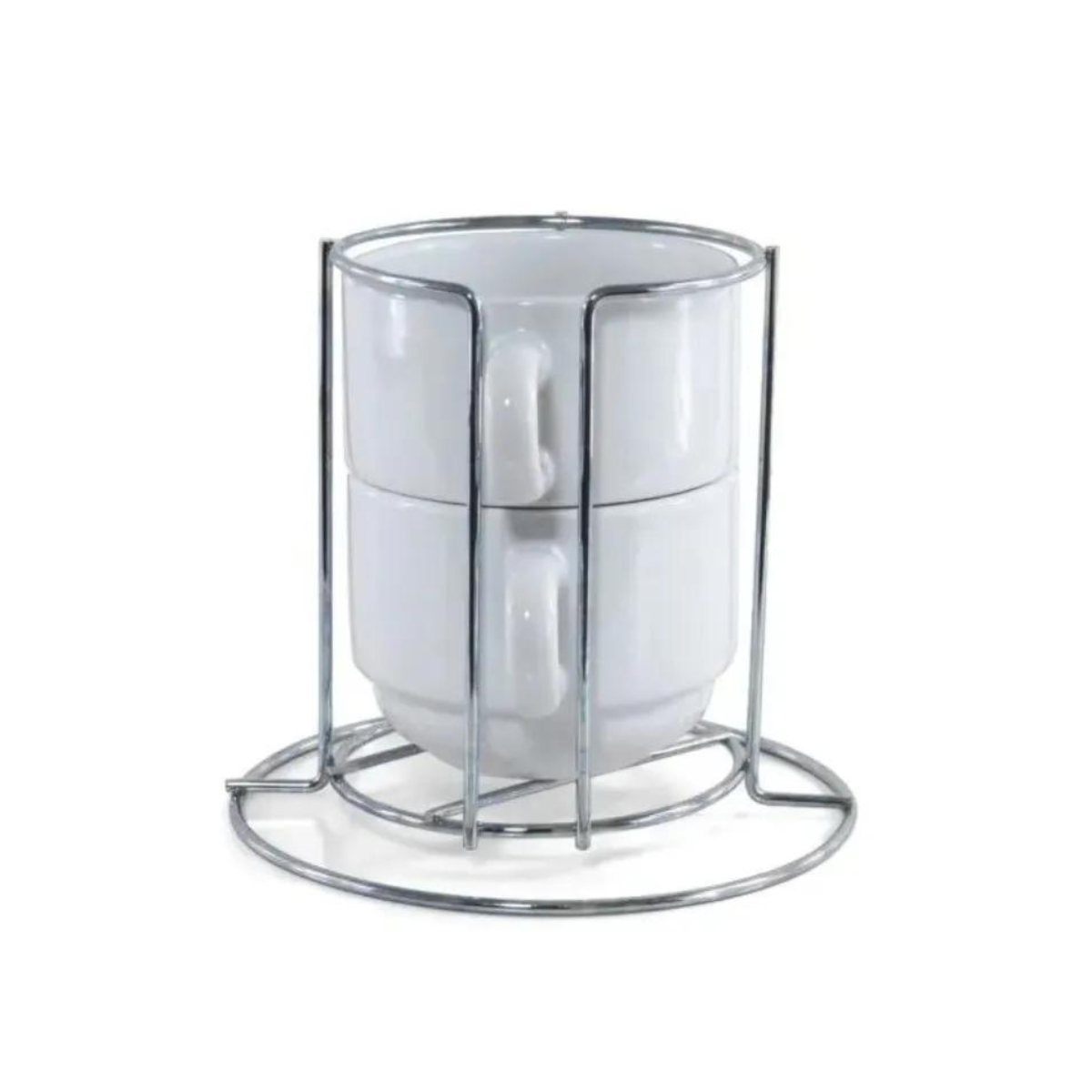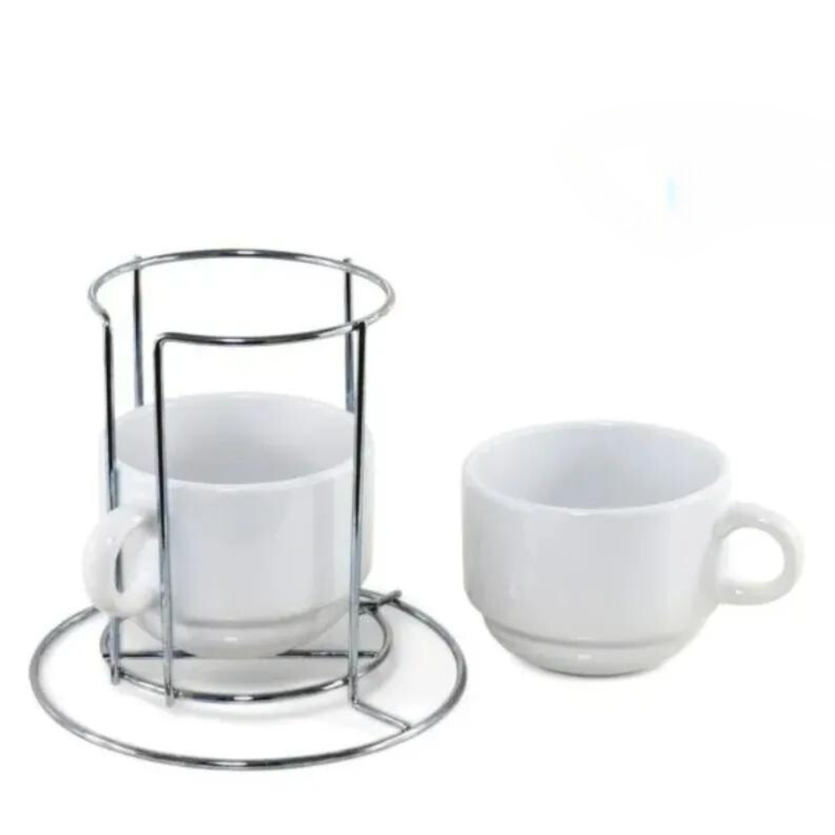 Jogo de xícaras produzida em alta qualidade. Ela possui um suporte de metal com um lindo acabamento.