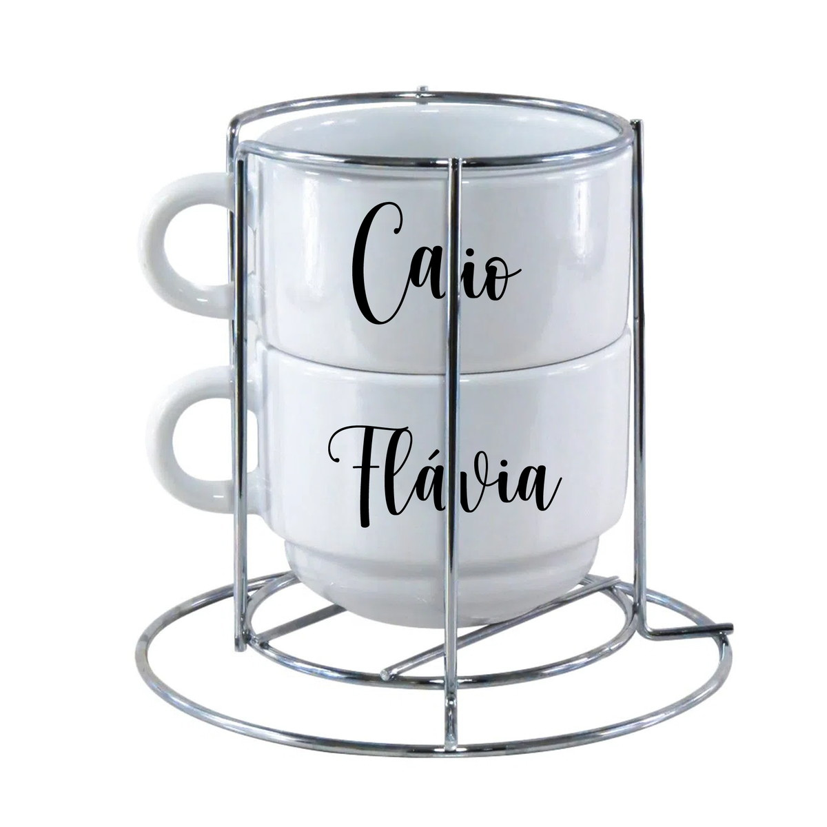 Kit 2 xícaras de café com suporte metal personalizado 180ml