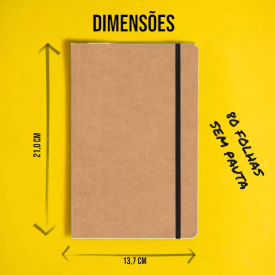 Moleskini Kraft 21×13,7cm 80 Folhas Sem Pauta Amareladas Gravação a Laser.